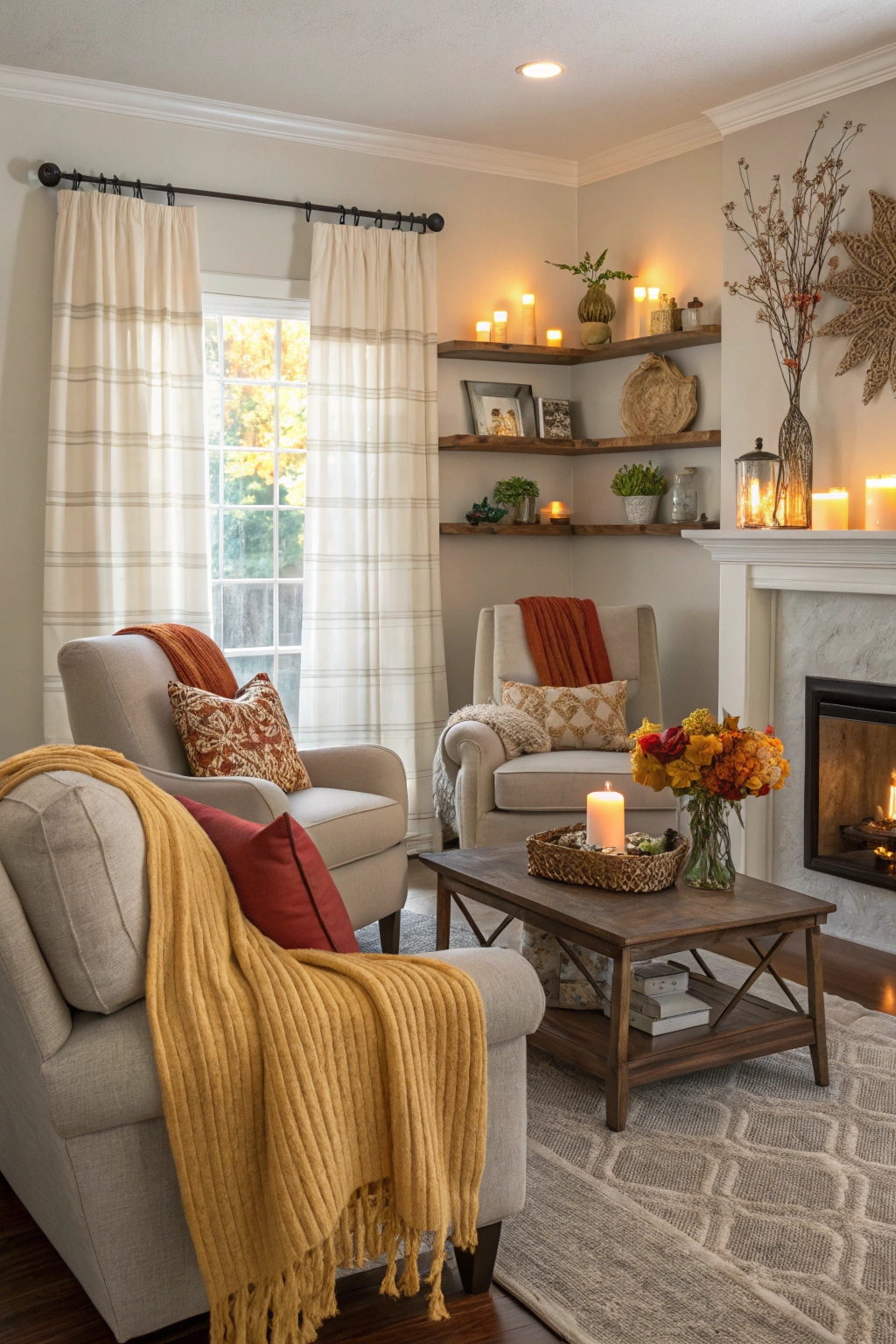 - Cozy candle arrangements for winter.