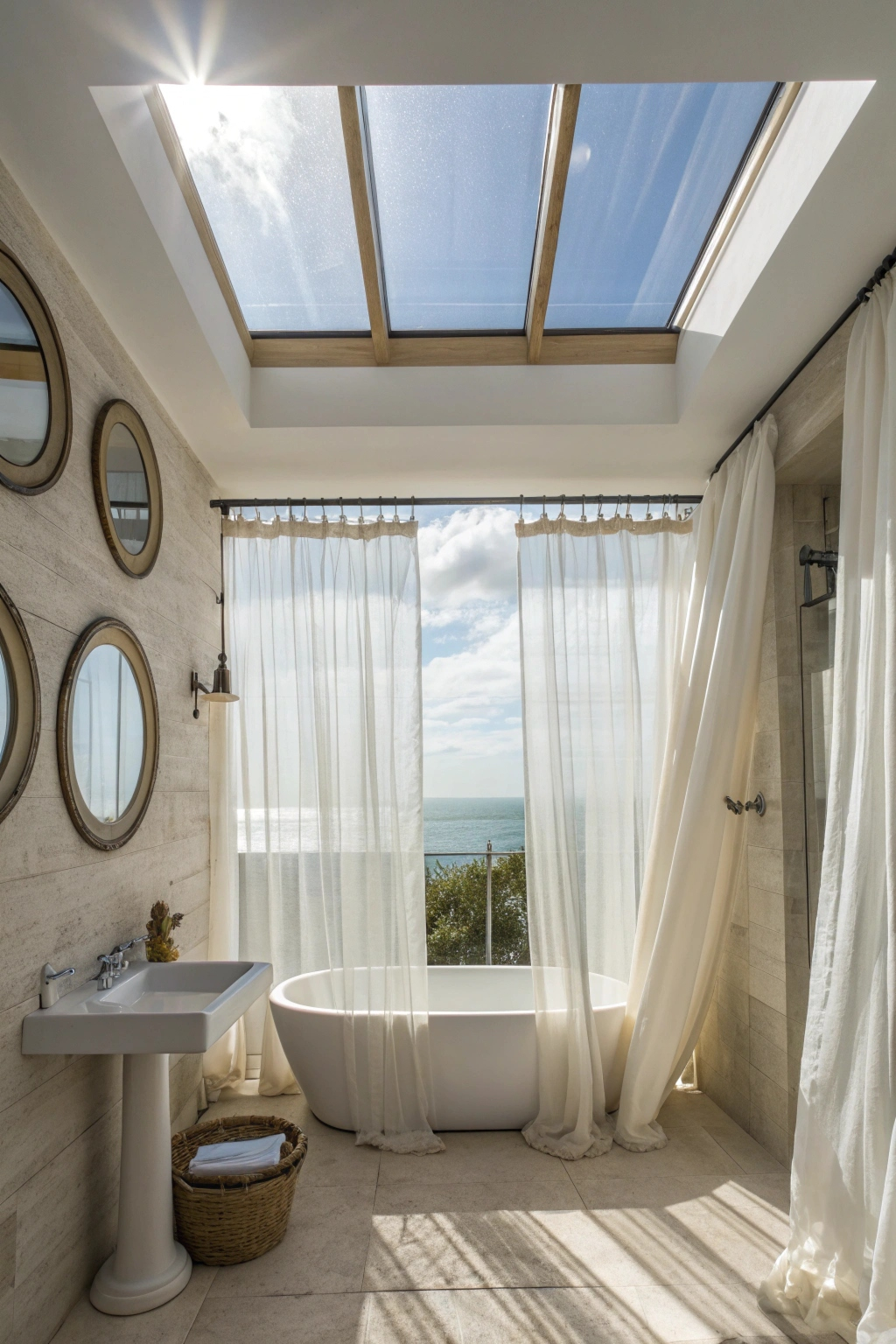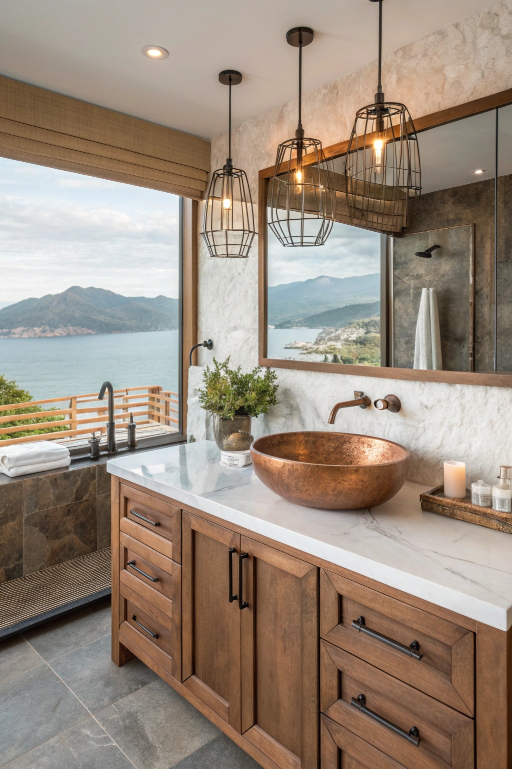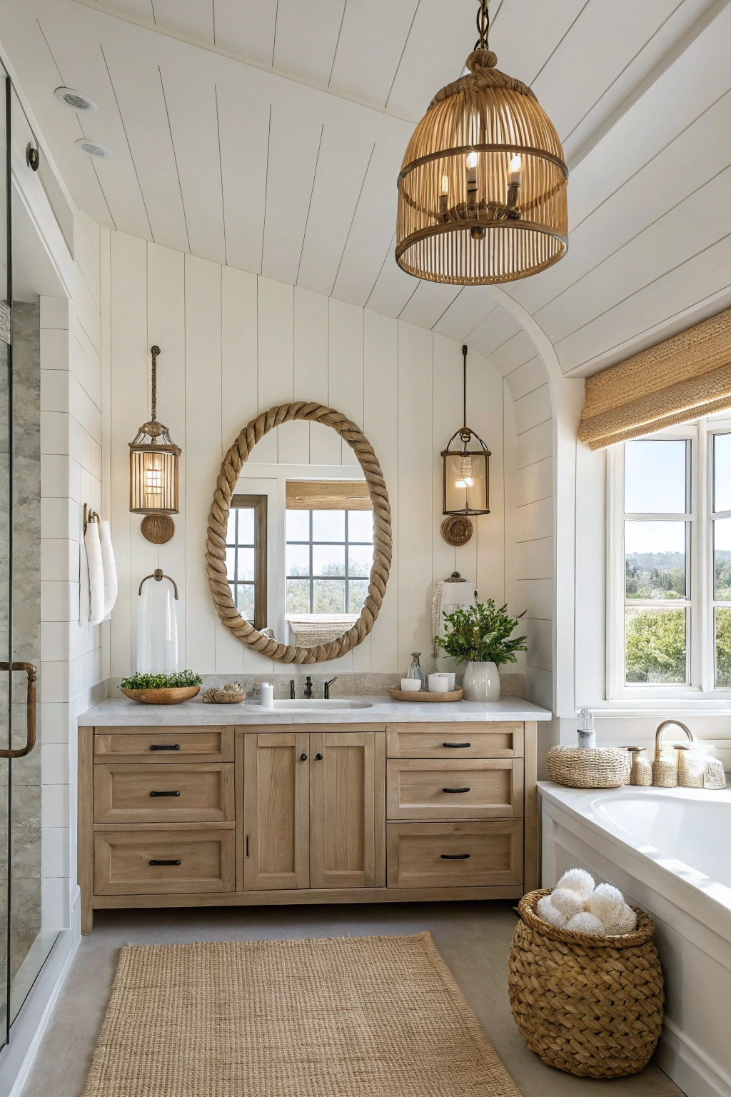 Pendant lights, sconces, and lantern-style fixtures all work well in a coastal bathroom. Look for designs that incorporate natural materials like rope or wood. These fixtures can create a warm and inviting atmosphere.