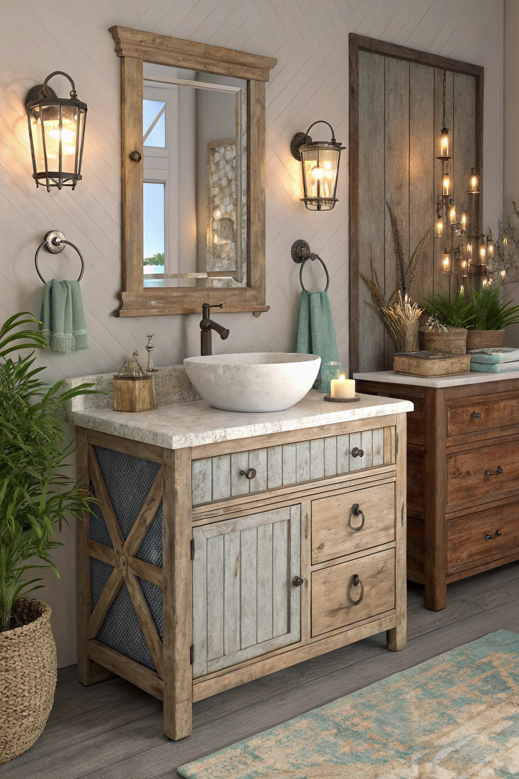 A rustic vanity can be a stunning focal point in your nautical bathroom. It adds character and a touch of vintage charm, enhancing the overall theme.