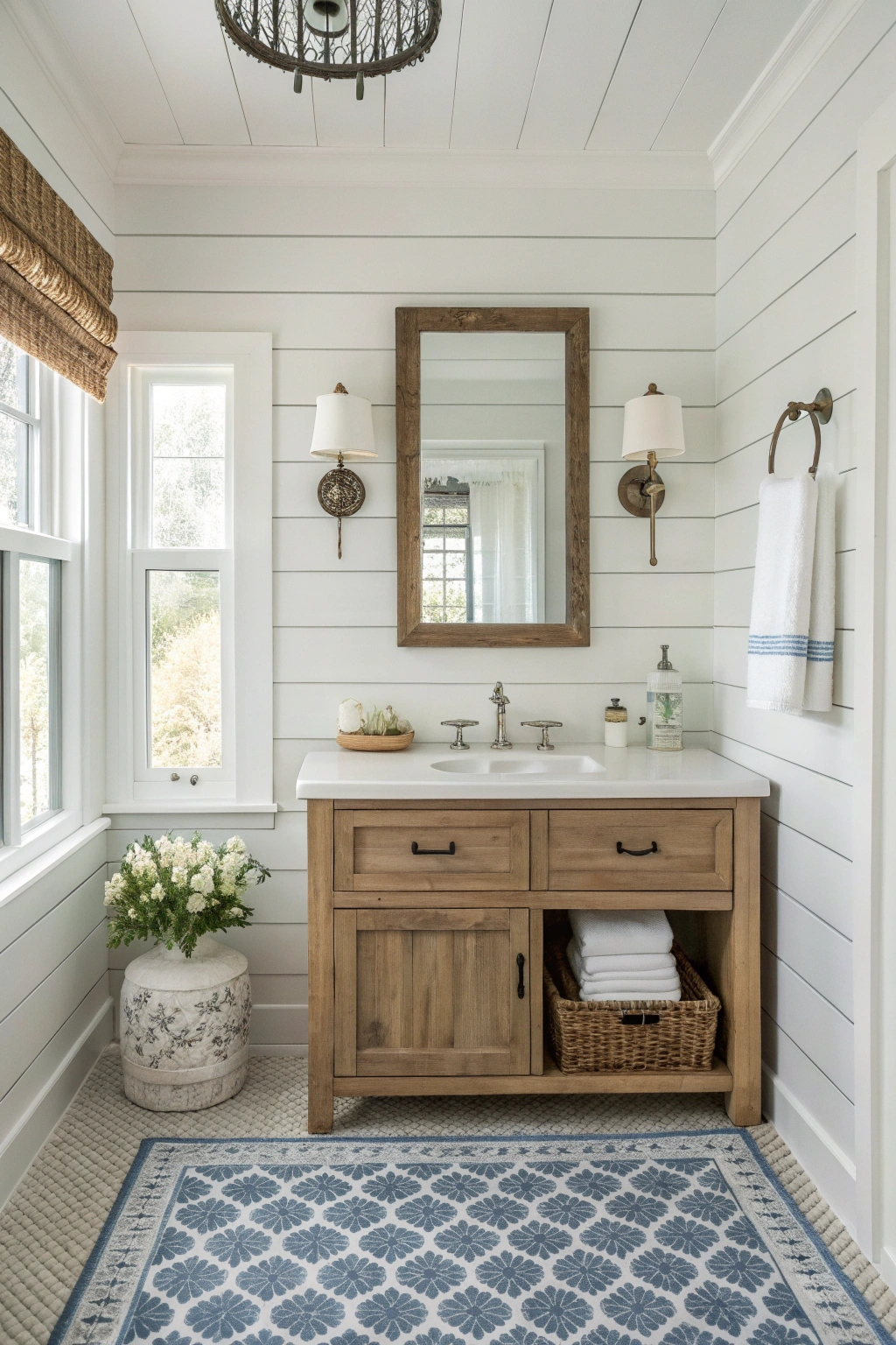 Installing shiplap or beadboard on your walls instantly gives your bathroom a coastal cottage feel. These wall treatments add texture and a touch of rustic charm, reminiscent of beachside cabins.