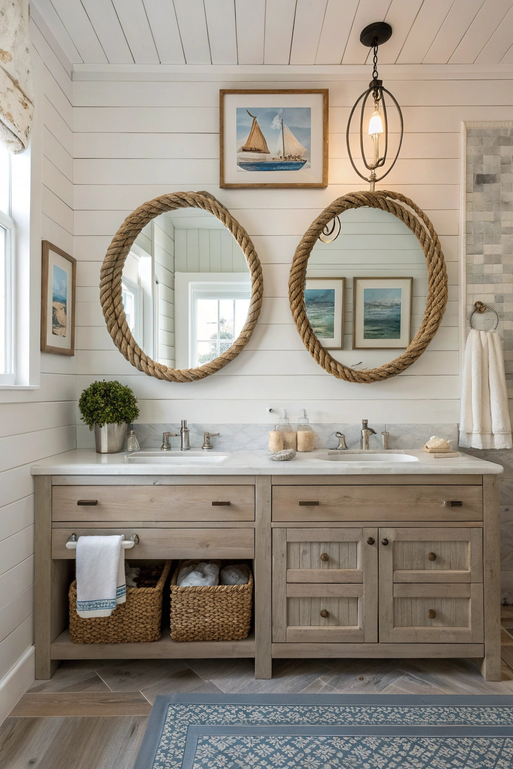 Mirrors are a must-have in any bathroom, and nautical-themed ones can be a great addition. They reflect light and make the space feel larger.