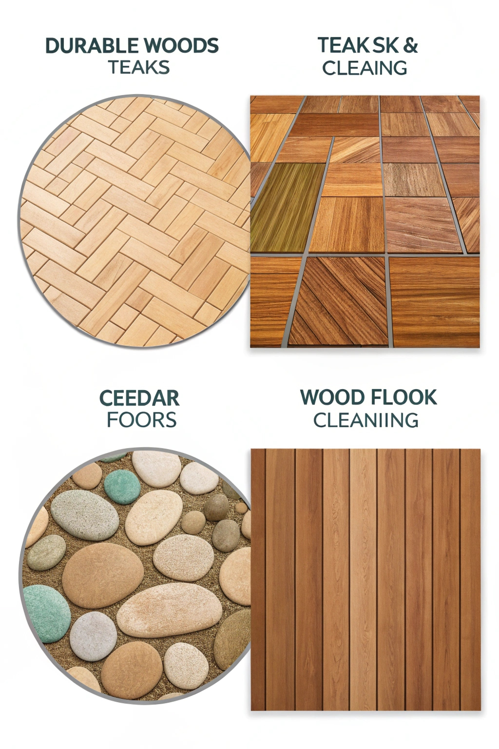 Opt for durable woods like teak or cedar that can withstand moisture. Alternatively, consider wood-look tiles for a more practical option. These tiles mimic the appearance of wood while being easier to maintain.