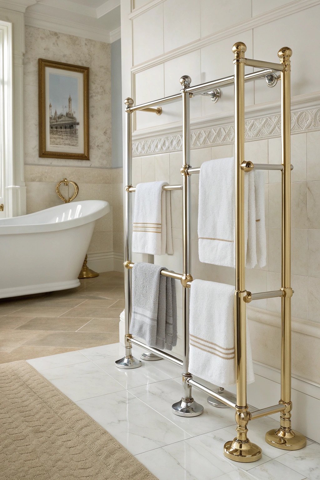 PinChoose elegant towel rails made from high-quality materials like chrome or brass. These not only keep your towels organized but also add a touch of class to your bathroom.