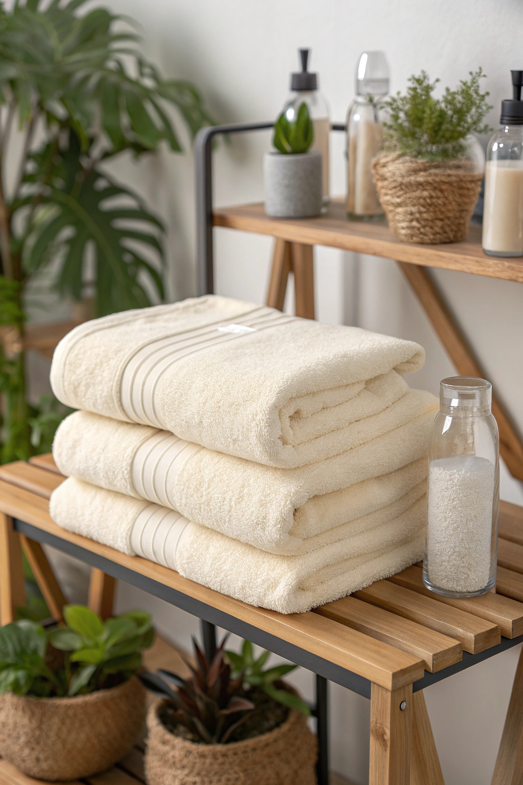 PinChoose organic cotton towels for an eco-friendly option. They are produced without harmful chemicals and are often softer and more durable. Plus, they’re better for the environment!