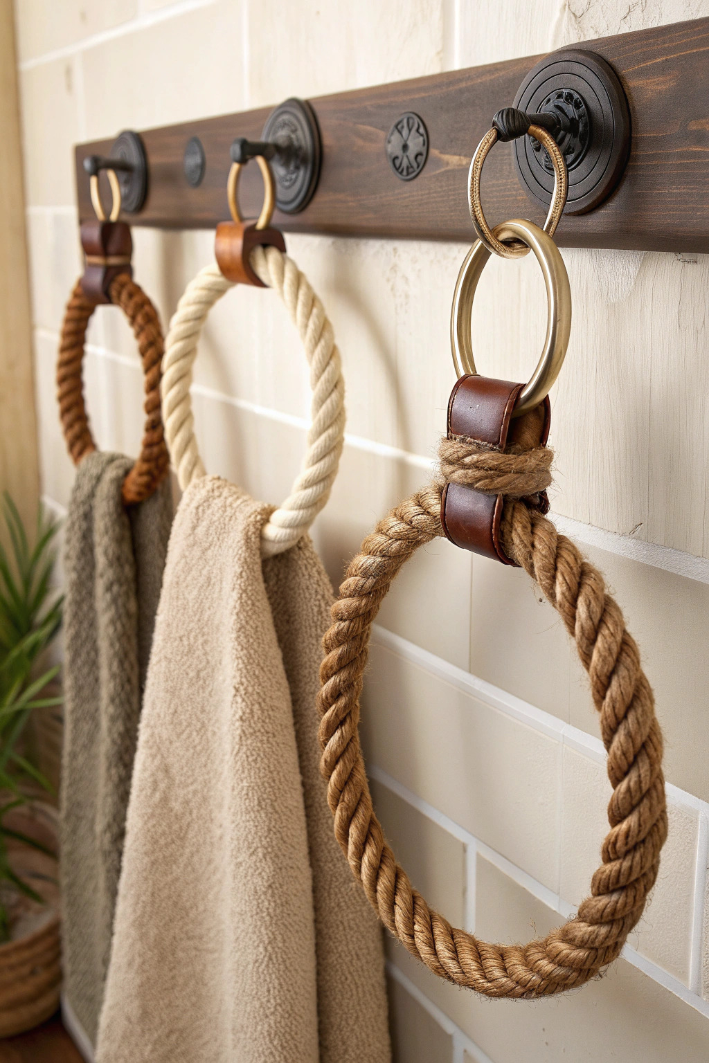 PinCreate handmade towel rings from materials like rope, leather, or wood. This adds a unique and personal touch to your bathroom décor.