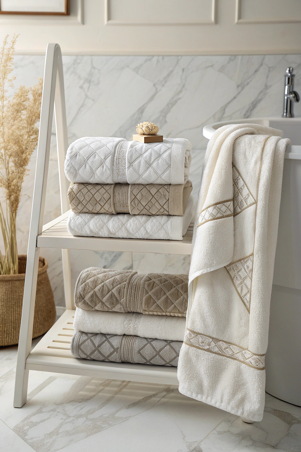 PinThink about the color scheme of your bathroom. Neutral tones like white, beige, and gray offer a timeless look, while bold colors can make a statement. Choose towels that complement or contrast with your existing décor to create a cohesive or striking effect.