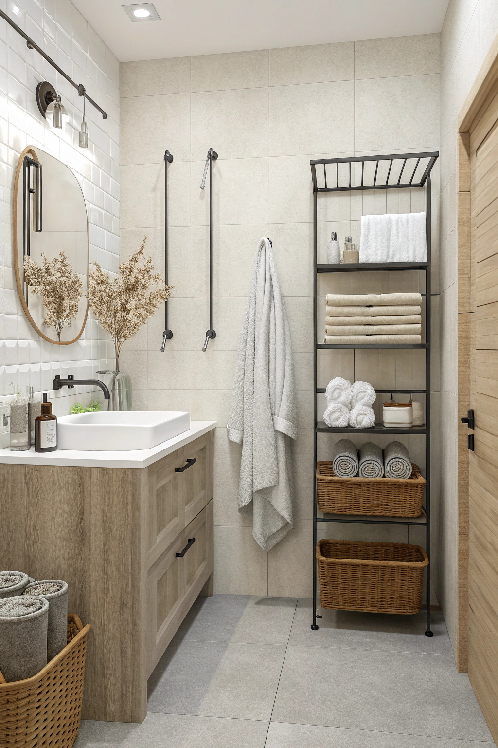 PinTowel racks and hooks are practical and stylish. Choose designs that match your bathroom’s theme. Vintage hooks add charm, while sleek, modern racks contribute to a contemporary look.