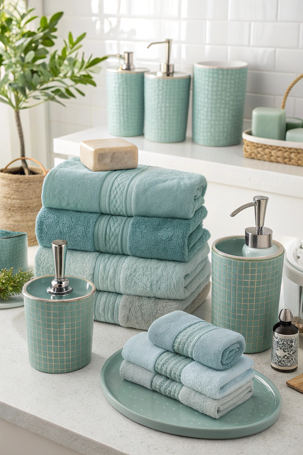 PinInvest in matching sets of towels and accessories for a cohesive look. This can include soap dispensers, toothbrush holders, and bath mats. Matching sets make your bathroom look put-together and stylish.