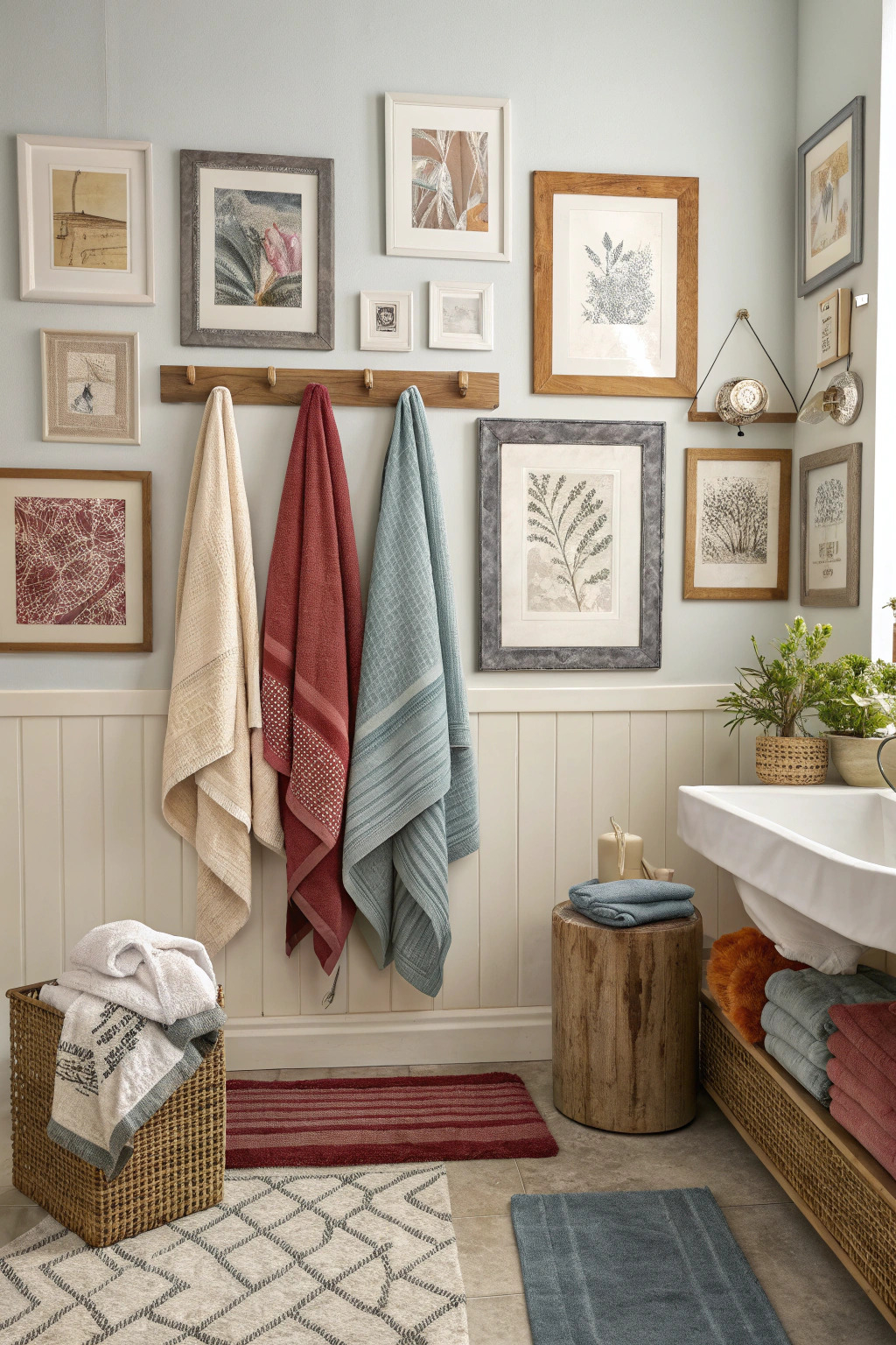 PinYes, you can create a gallery wall with towels! Use a mix of towel sizes and colors, hanging them in a pattern. This can become a focal point in your bathroom, adding texture and color.