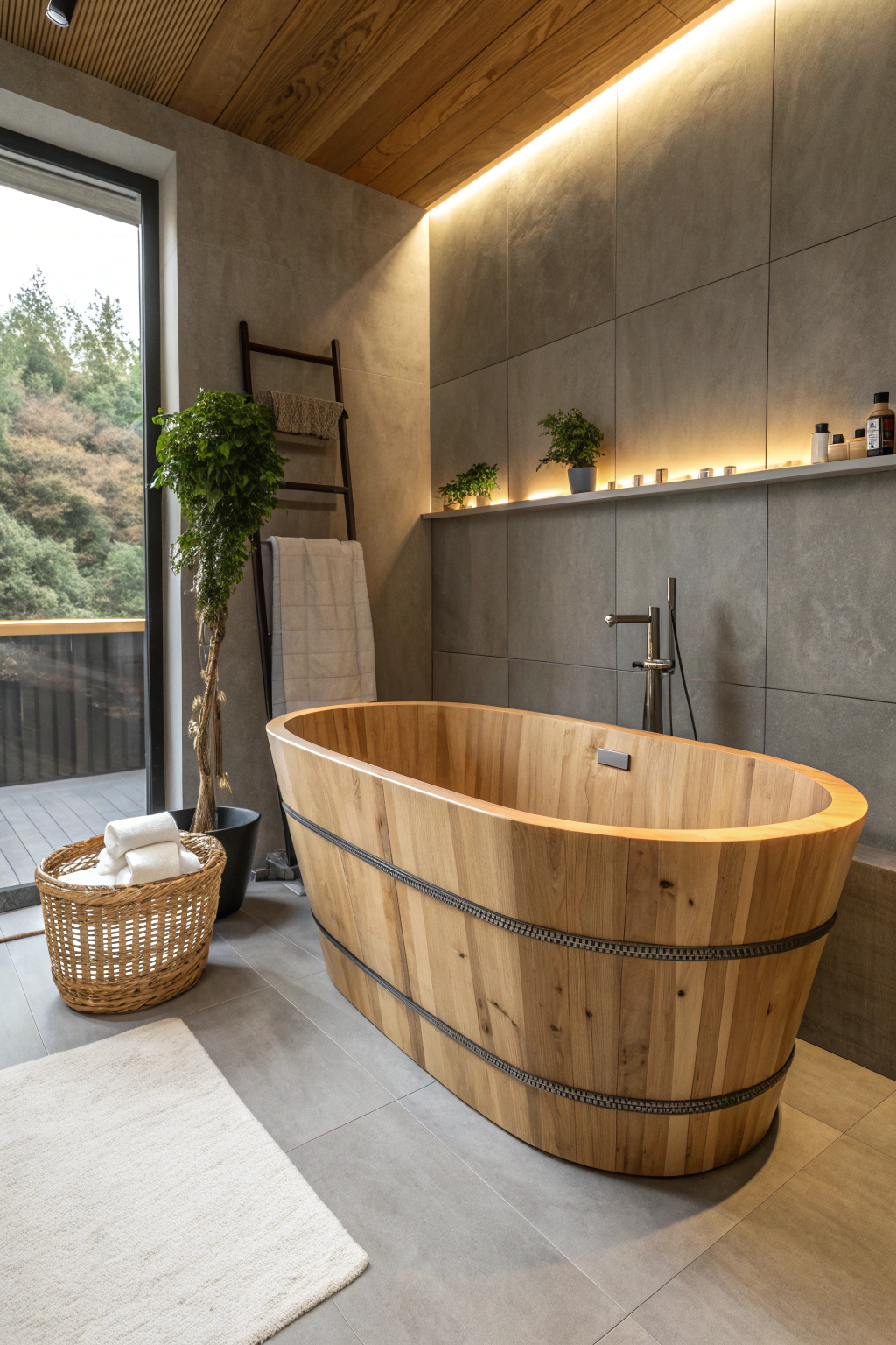 PinA freestanding wooden tub can be a stunning focal point in your bathroom, offering a natural and luxurious bathing experience. These tubs are typically made from cedar or hinoki wood, known for their beautiful grain and soothing fragrance. The natural warmth of the wood creates a comforting and inviting atmosphere, while the deep design allows for a fully immersive soak. A freestanding wooden tub can elevate the overall aesthetic of your bathroom, making it a true sanctuary for relaxation.