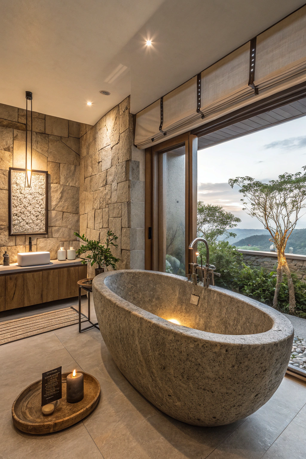 PinA stone bathtub can be a luxurious and natural focal point in your bathroom, creating a spa-like atmosphere. These bathtubs are typically carved from a single piece of stone, such as granite, marble, or limestone, offering a unique and sophisticated look. The natural variations in the stoneβs color and texture add a touch of elegance and exclusivity. A stone bathtub provides a deep and immersive soaking experience, promoting relaxation and rejuvenation.