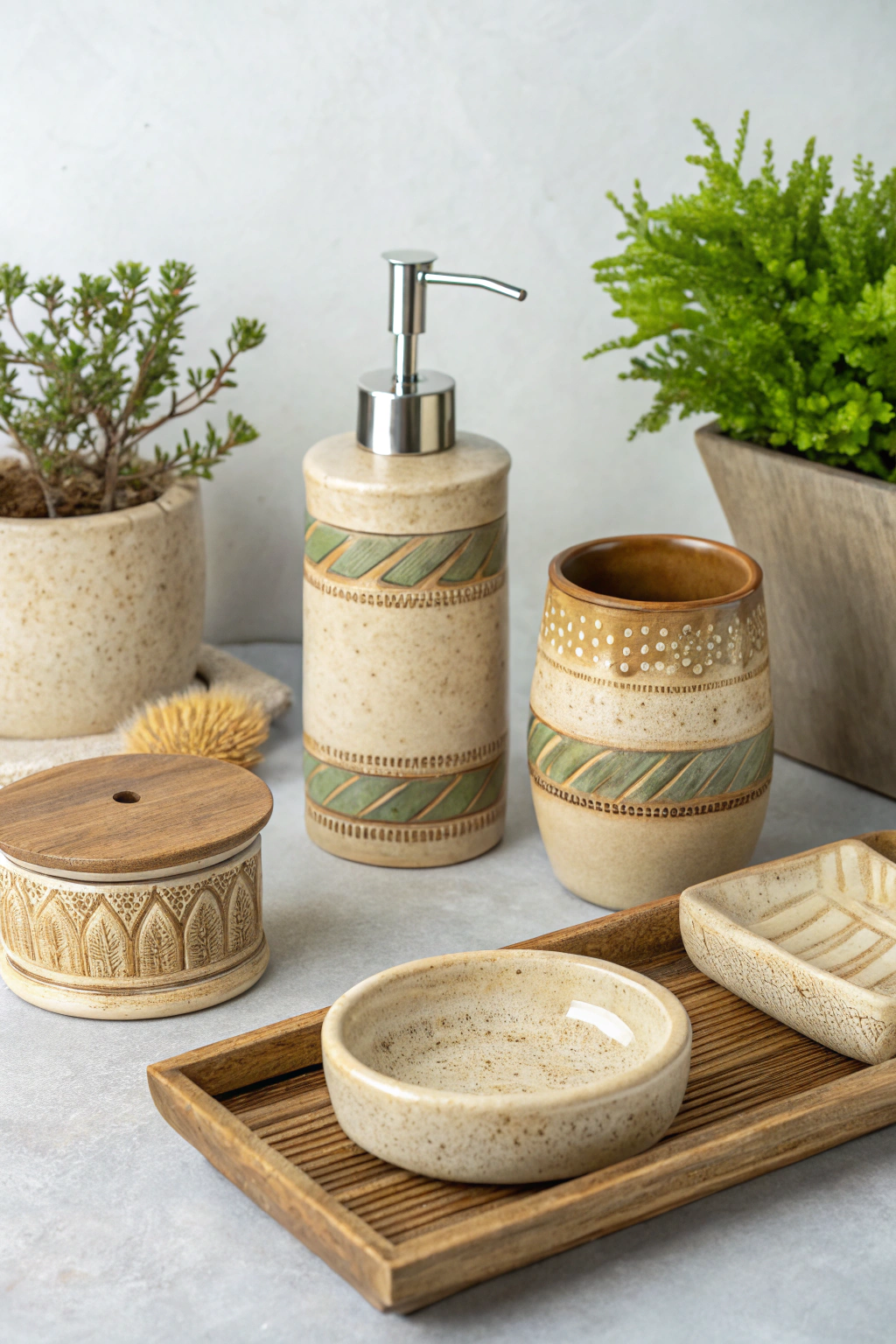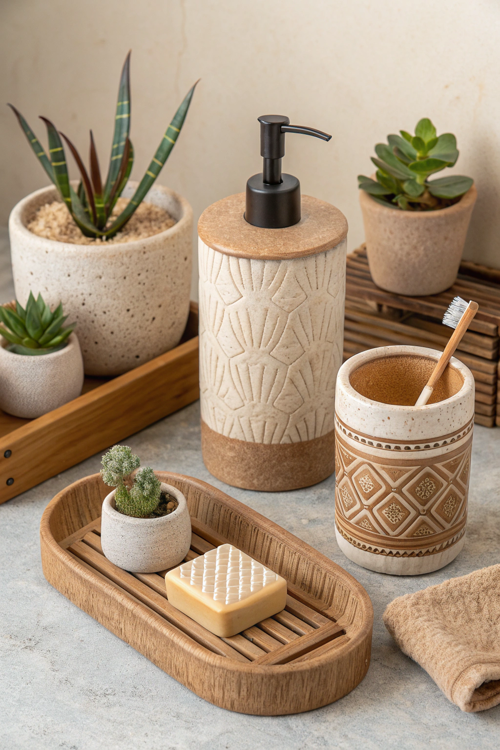 PinChoosing clay or ceramic accessories for your bathroom can add a handcrafted and artisanal feel. Items such as soap dishes, toothbrush holders, and planters made from clay or ceramic bring a unique and rustic charm to your space. The natural textures and earthy colors of these materials complement the overall aesthetic, creating a harmonious and cohesive look. These accessories can also serve as functional and decorative elements, enhancing the overall ambiance of your bathroom.
