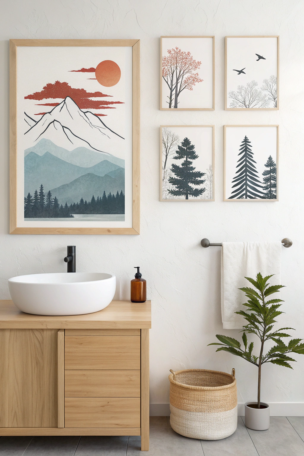 PinChoosing simple and minimalist wall art for your bathroom can complement the serene and uncluttered design. Abstract paintings, nature-inspired prints, or Zen-themed artwork can add visual interest without overwhelming the space. The clean lines and understated designs of simple wall art create a calming and harmonious atmosphere, enhancing the overall aesthetic. Well-chosen wall art can serve as focal points and contribute to the cohesive look and feel of your bathroom.