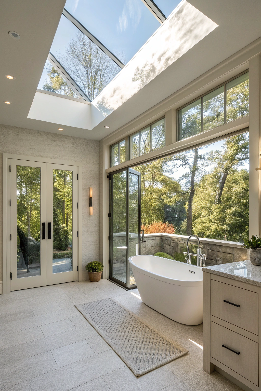 PinMaximizing natural light in your bathroom can create a bright and airy feel, enhancing the overall ambiance. Large windows, skylights, or glass doors allow sunlight to flood the space, reducing the need for artificial lighting. Natural light not only improves visibility but also creates a sense of openness and connection to the outdoors. Designing your bathroom to maximize natural light can enhance the overall aesthetic and promote a sense of well-being and relaxation.