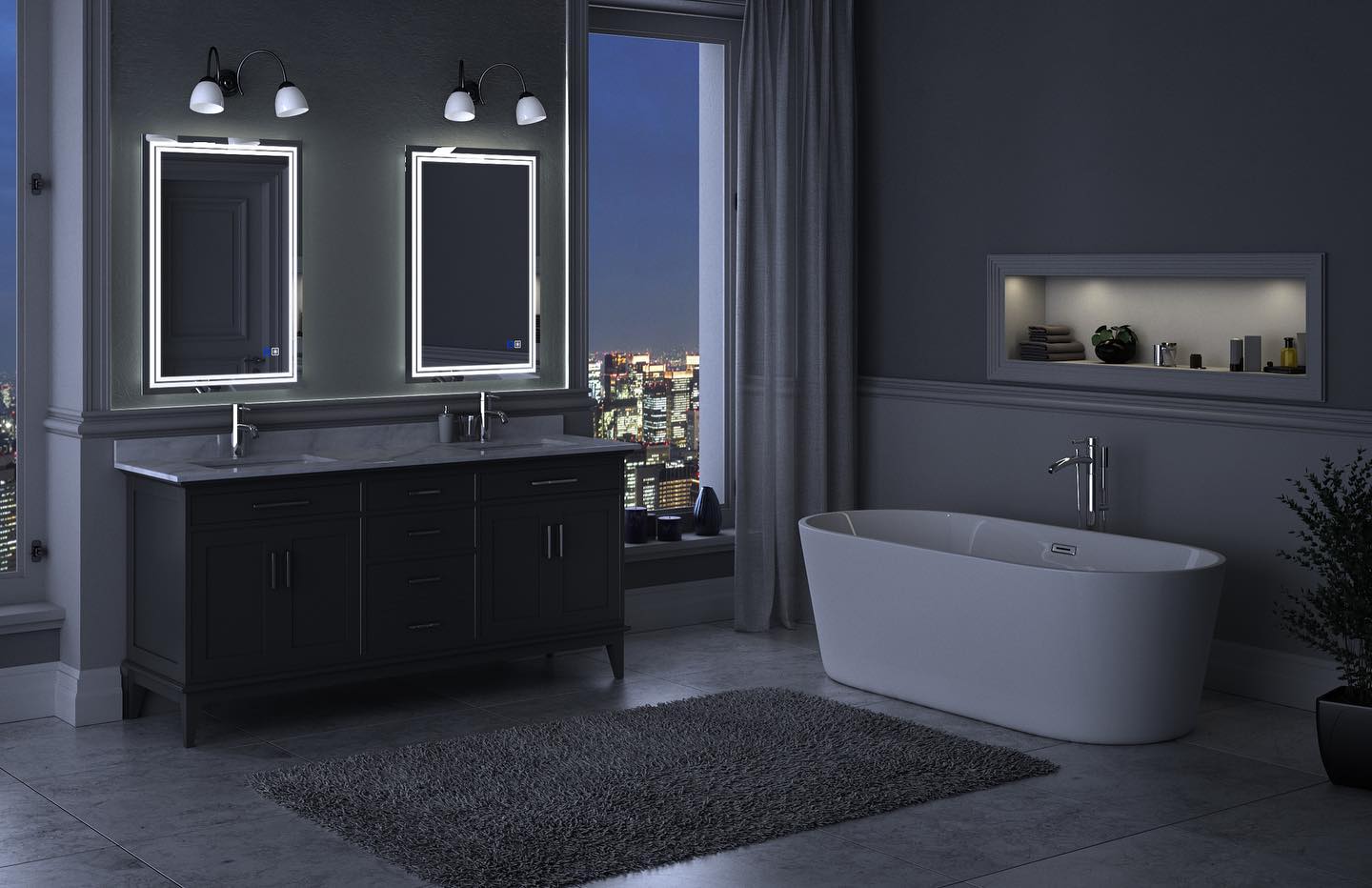 The overall image is one of sophistication and tranquility, perfectly encapsulating a modern, luxury bathroom design.