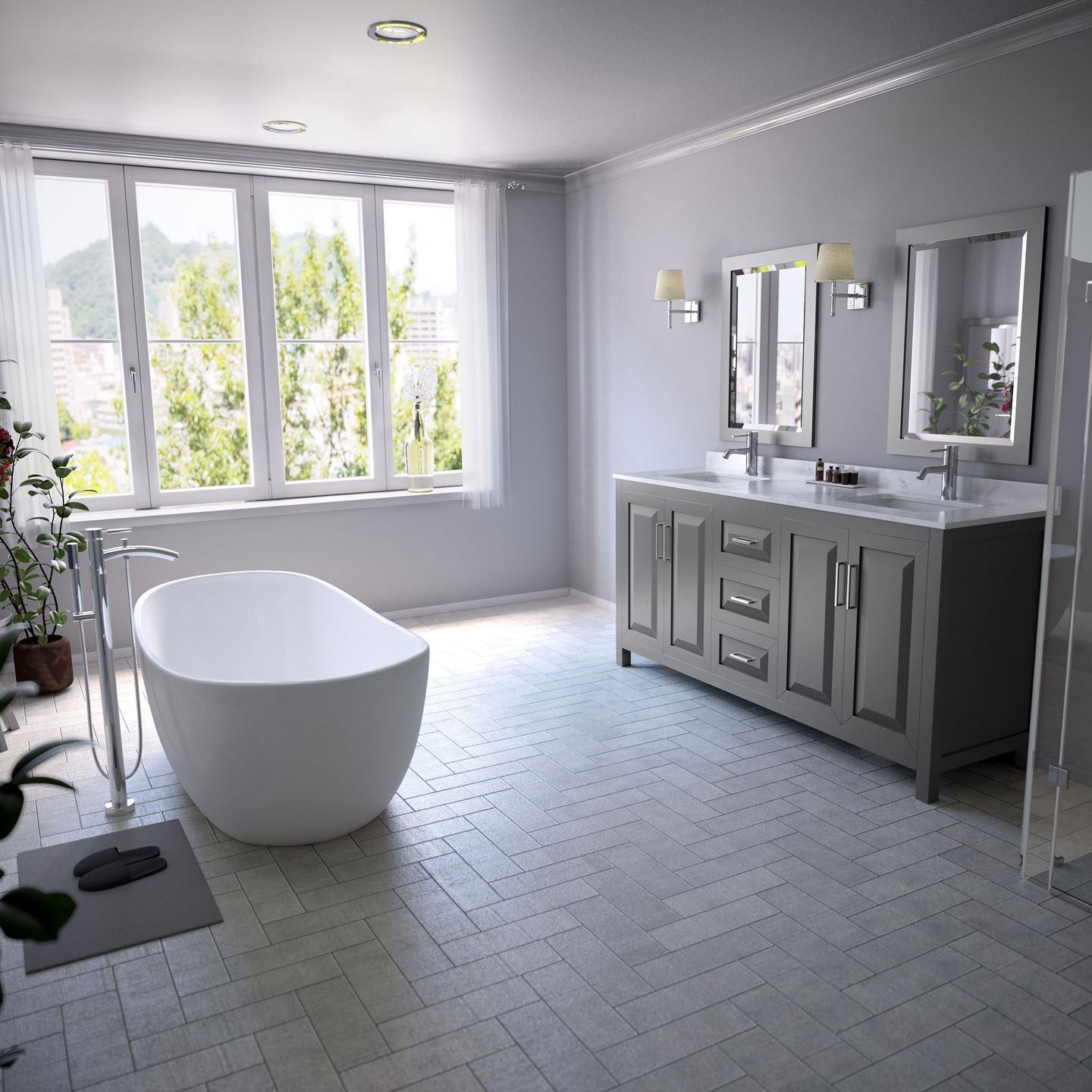 This image depicts an elegantly designed bathroom interior.