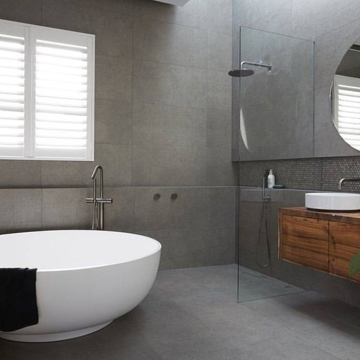 The bathroom's walls are also grey, following a consistent color scheme throughout the space.