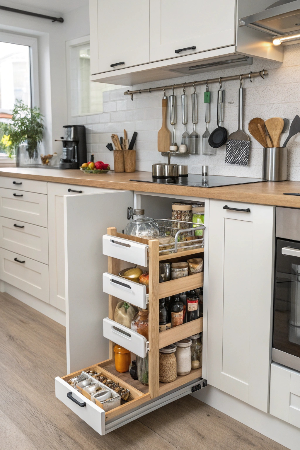 - Magnetic strips for holding utensils and spices