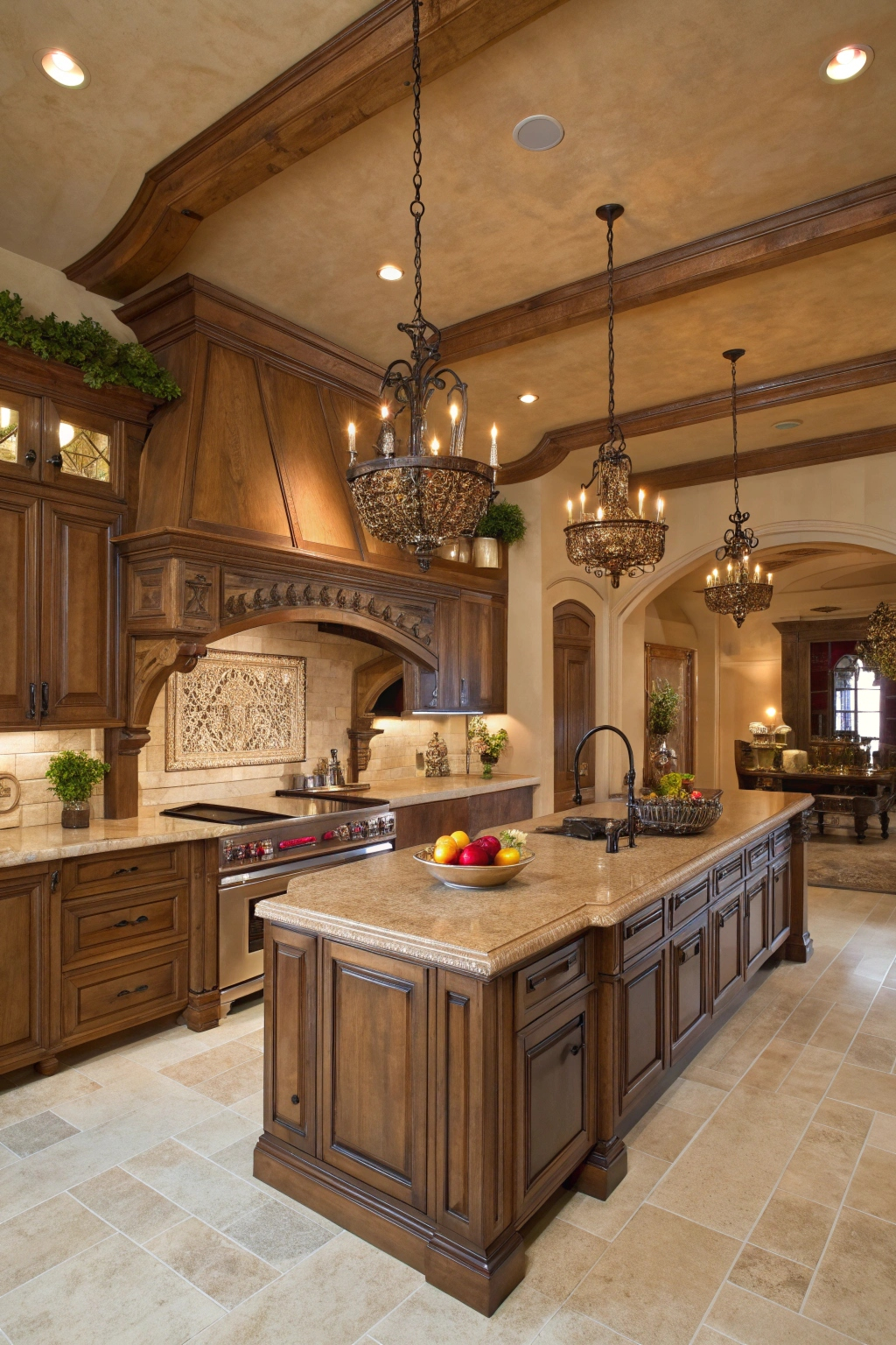 - Rich wooden cabinetry for a rustic touch