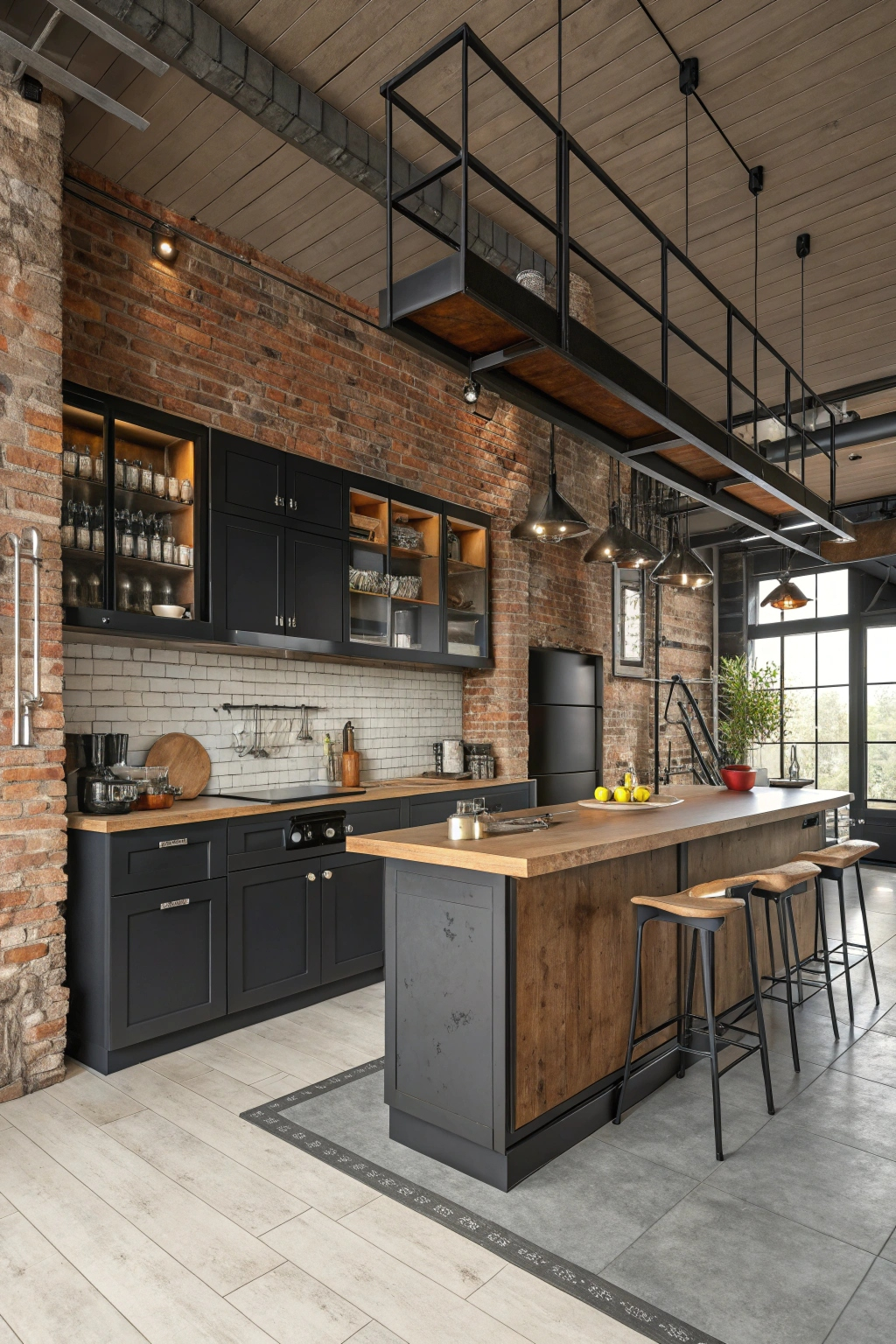 - Use reclaimed wood for cabinets or beams.