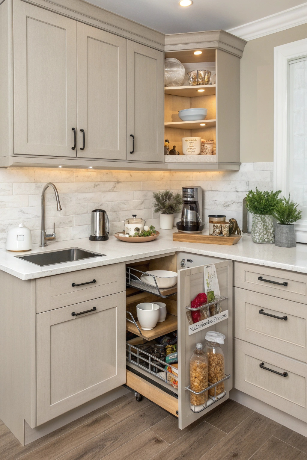 - Under-cabinet racks to save counter space