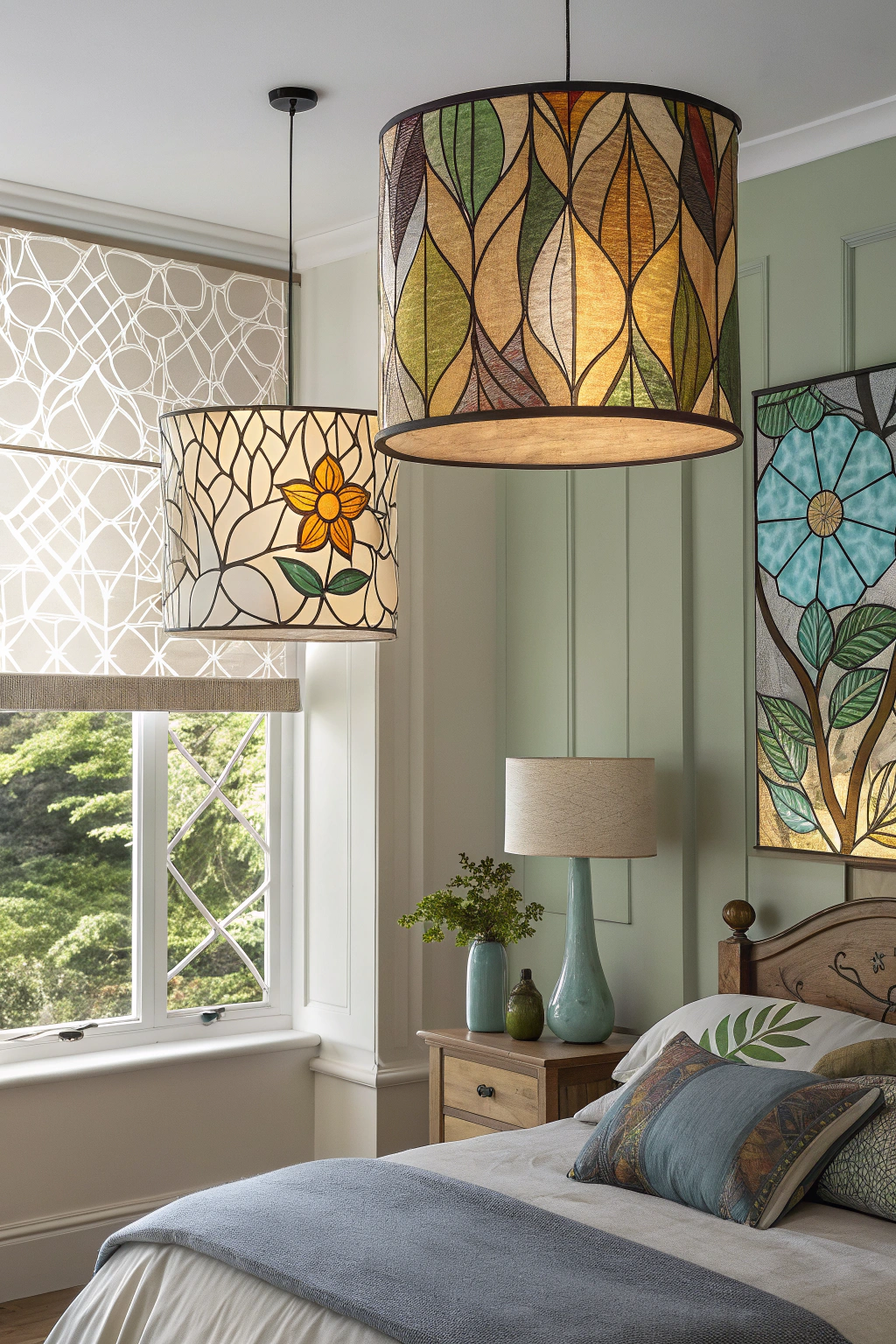 Artistic shade designs can elevate the ambiance of your bedroom considerably, infusing it with creativity and personality. Consider incorporating these ideas for an instant upgrade:
