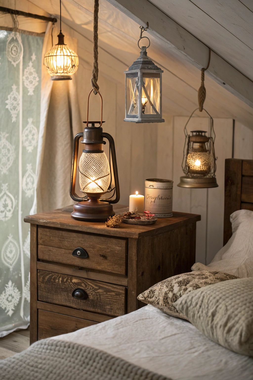 Vintage lanterns can transport you back in time, creating a nostalgic atmosphere in your bedroom. Their warm glow adds character, making your space feel inviting and cozy. You can hang them from the ceiling or place them on bedside tables for a charming touch. Choose a few different sizes and designs to enhance the vintage vibe, transforming your room into a cozy retreat.