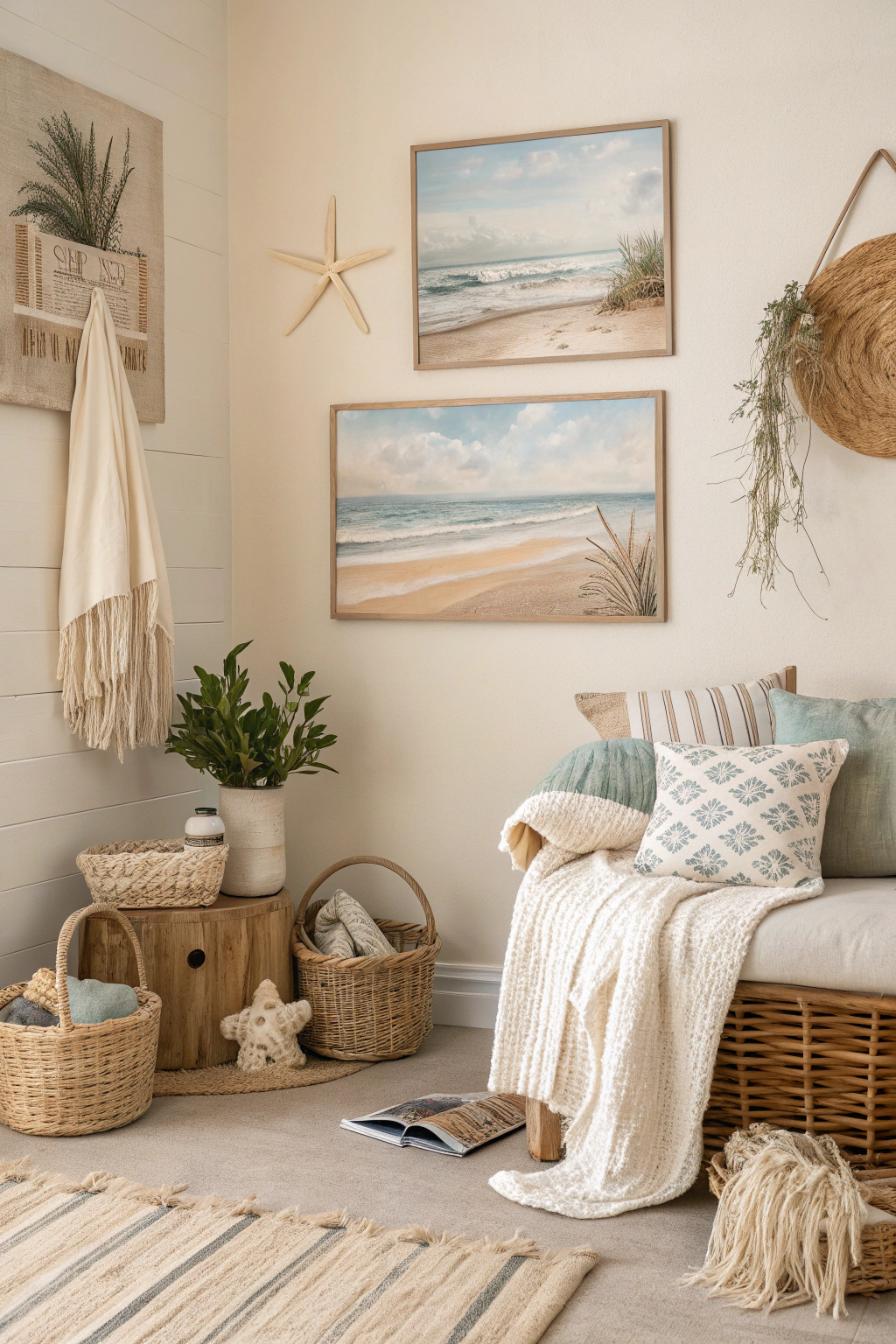 A beachy beige coastal retreat invites warmth and tranquility into your home, reminiscent of sandy shores and gentle waves. To achieve this look, use soft beige tones on walls and pair them with light, airy textiles. Incorporate natural elements like driftwood accents and woven baskets. Add coastal-inspired artwork or seashells to create a soothing atmosphere that transports you to your favorite beach escape.