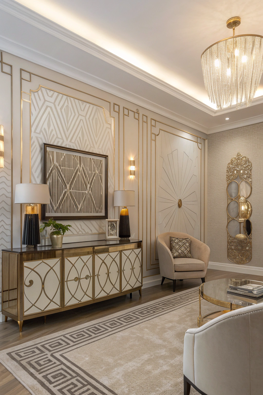 Art Deco design seamlessly pairs with beige to craft a sophisticated and stylish atmosphere in your space. To emphasize the elegance, incorporate geometric patterns in your decor through wallpapers or artwork. Opt for sleek furniture with shiny metallic accents, and add statement pieces like mirrors or sculptural lighting. This combination creates a unique blend of modern glamour and warm neutrality, elevating your beige room effortlessly.