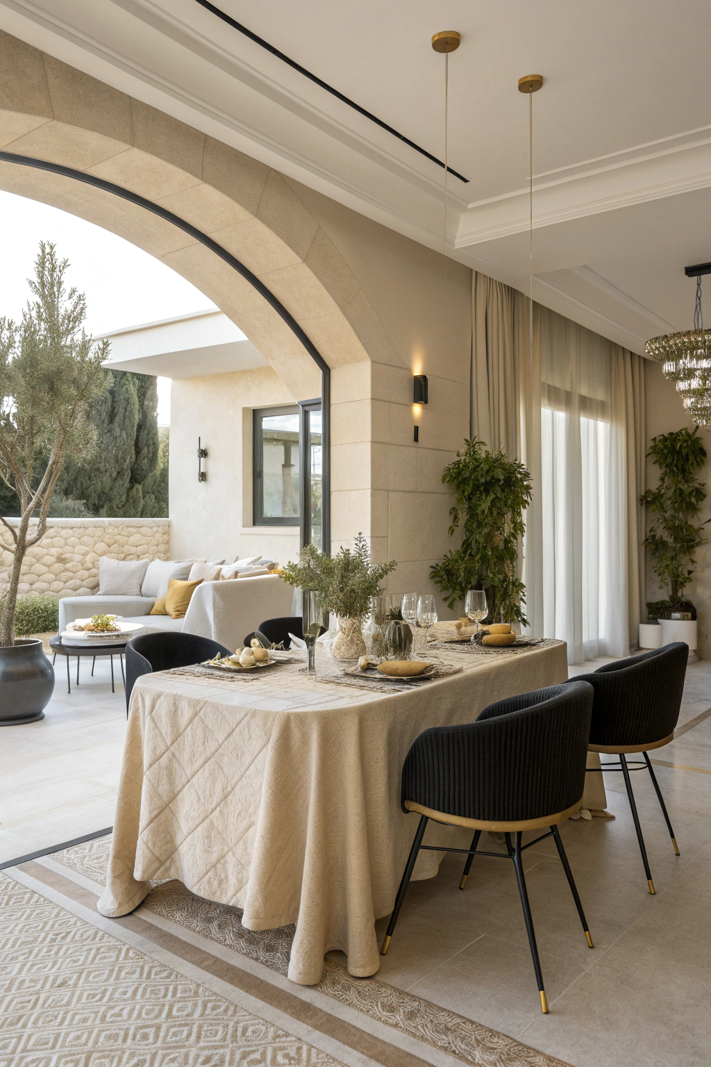 Creating a calming aesthetic in your home can seamlessly flow from your outdoor beige lounge area into a sophisticated beige dining room. To elevate the space, choose a textured beige tablecloth, complement it with sleek gold or black accents, and add plush seating. Soft lighting enhances the ambiance, creating an inviting atmosphere for dinner parties or casual meals. Embrace simplicity and elegance with carefully curated decor.