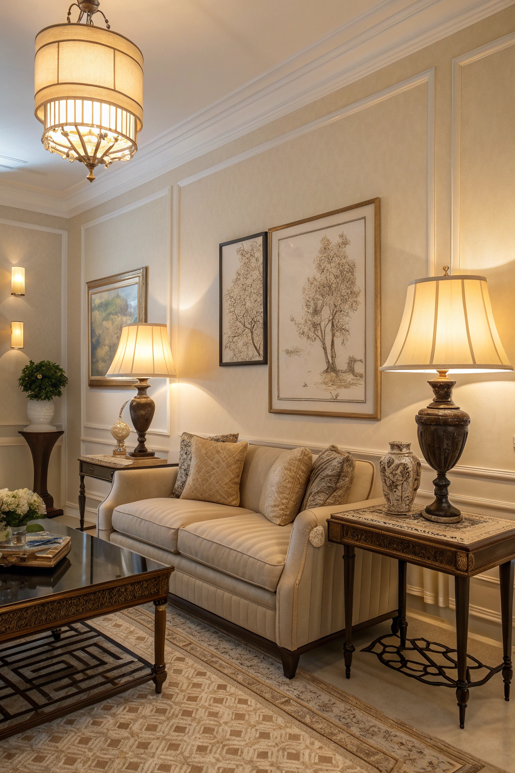 Enhancing your space with warm beige accent lighting creates an inviting atmosphere that instantly elevates the room's aesthetic. Use table lamps with soft beige shades to cast a cozy glow, or install sconces that highlight artwork. Don't forget floor lamps that blend seamlessly into the décor. This lighting choice not only adds depth but also complements your existing furnishings beautifully.