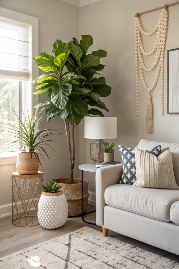 When it comes to adding life to your home, statement plants can be game-changers. Choose bold, eye-catching varieties like a fiddle leaf fig or a monstera to create a vibrant focal point. Position them in well-lit areas, allowing their unique shapes and colors to shine. You'll instantly elevate your space, making it feel more inviting and stylish without overwhelming the room.