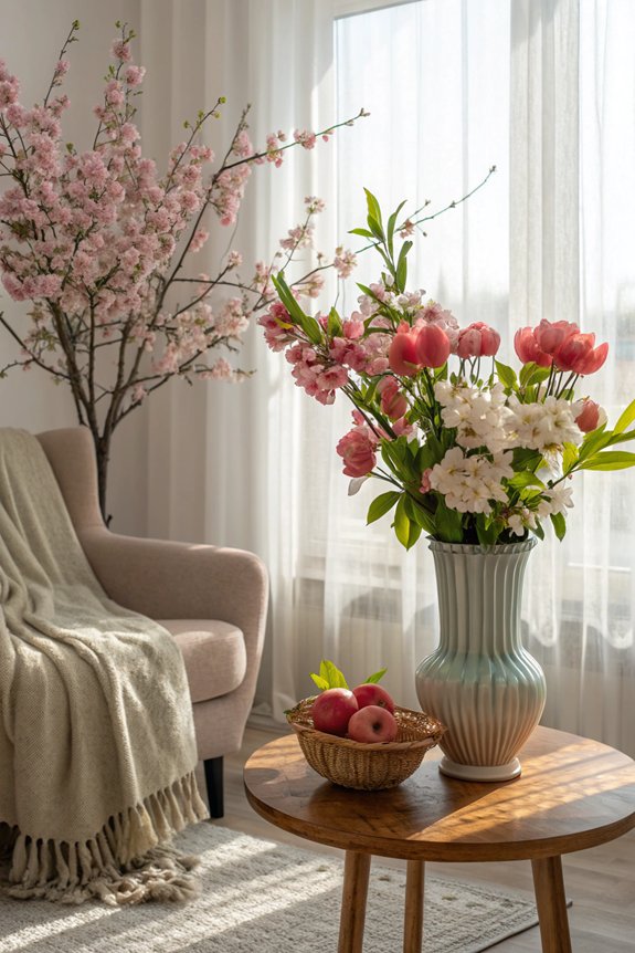 How can you effortlessly bring the beauty of nature indoors? Seasonal floral arrangements can transform your space. Choose blooms that reflect the season and complement your decor. Here are three tips to get started: